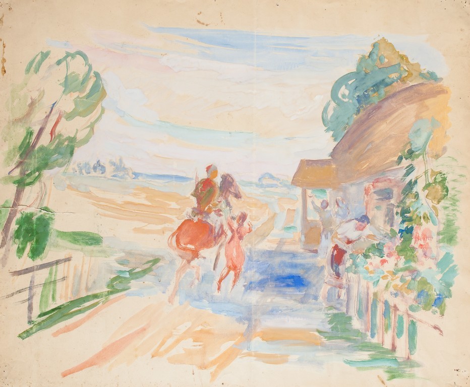 Всадник на деревенской улице.