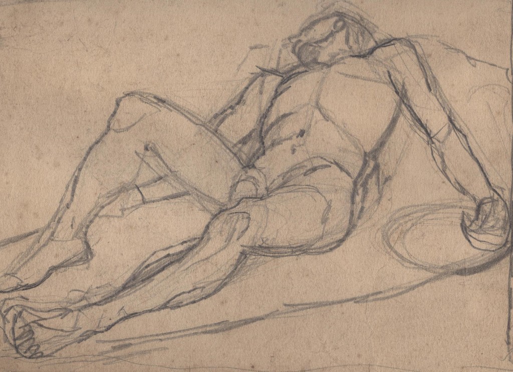 Лежащий обнажённый натурщик.