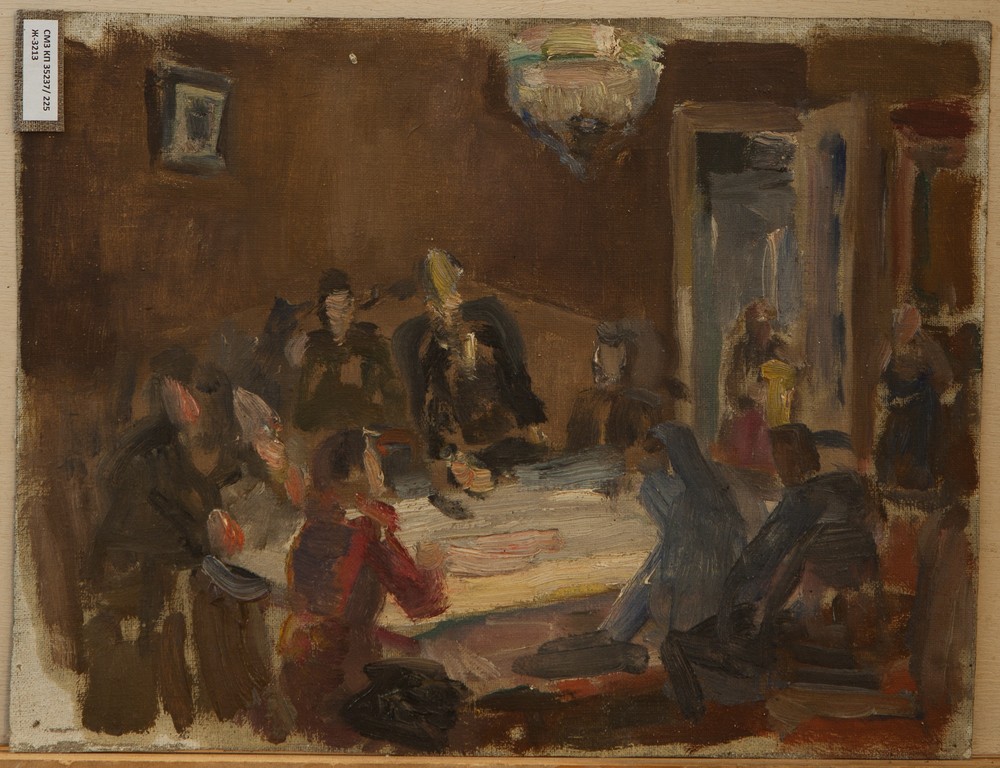 Группа людей, сидящих за столом. (На обороте: из серии Этюды и эскизы к картине "Бассейн").