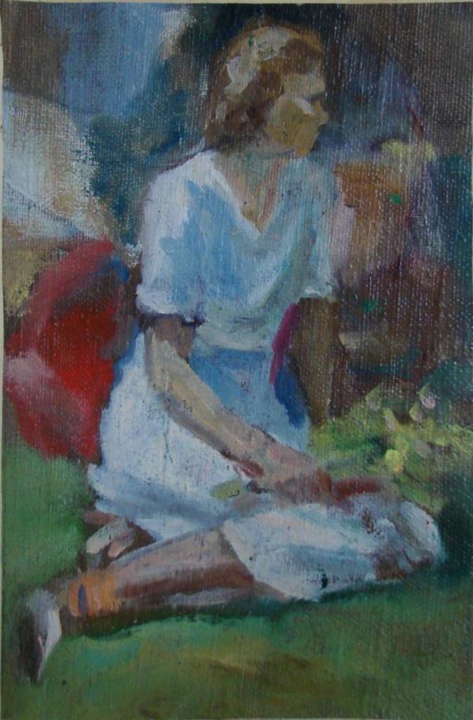 Девушка, сидящая на траве.