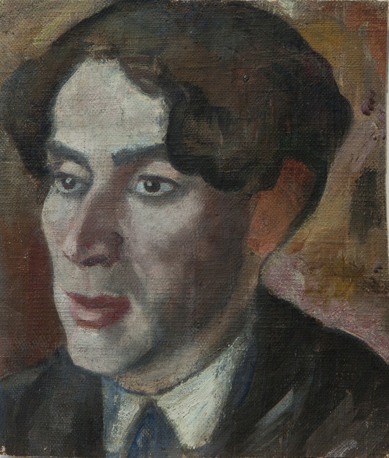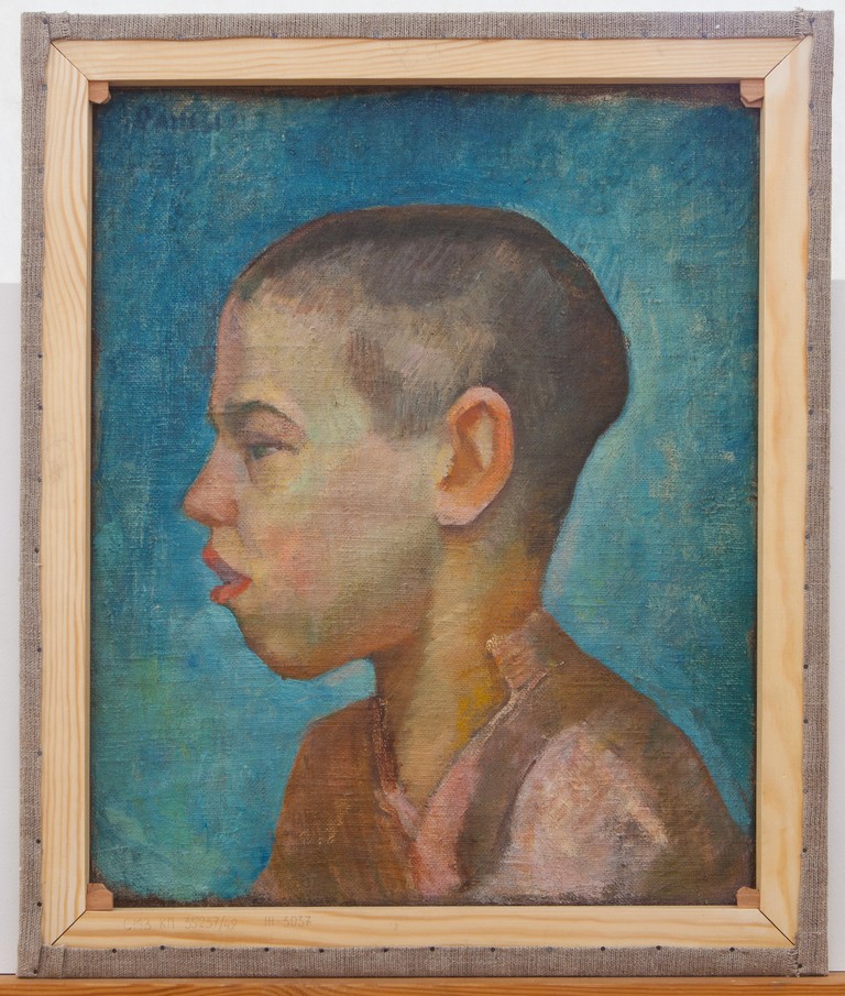 Подписной слева вверху: А.Сашин. На обороте голова мальчика в профиль влево на голубом фоне