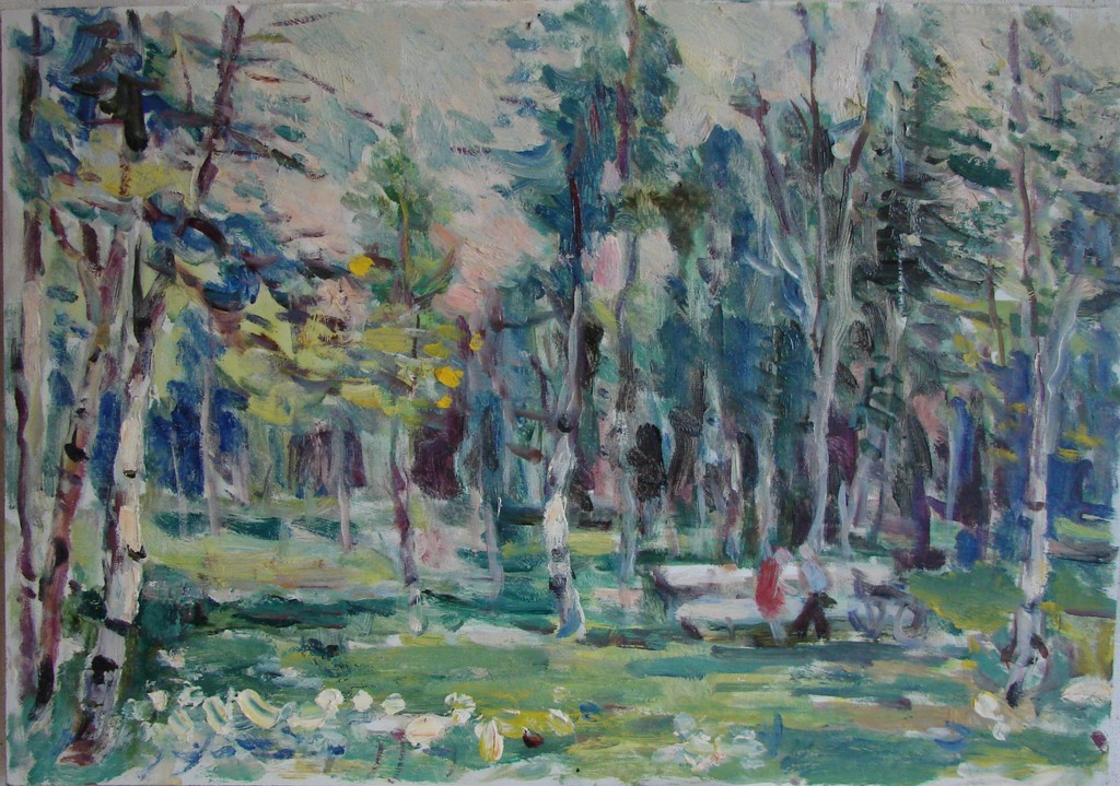 Березовая роща в парке.