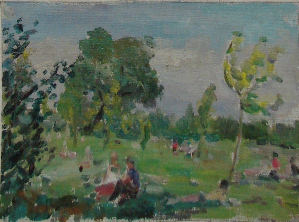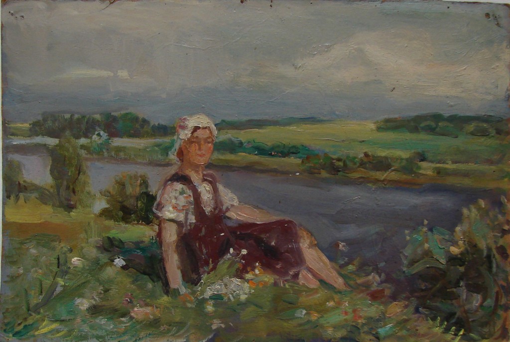 Этюд Девушка, сидящая на траве. (На обороте: Композиция В парке).