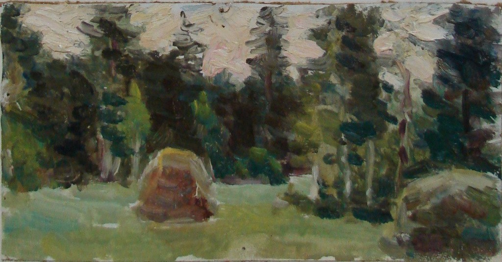 Стога на лесной поляне.