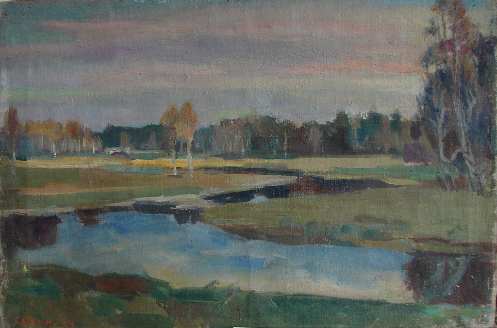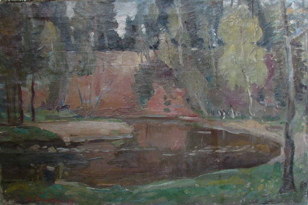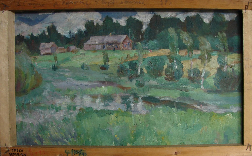 - Река Пудость. У горбатого мостика. (На обороте: Деревенский пейзаж с лесом и речкой).