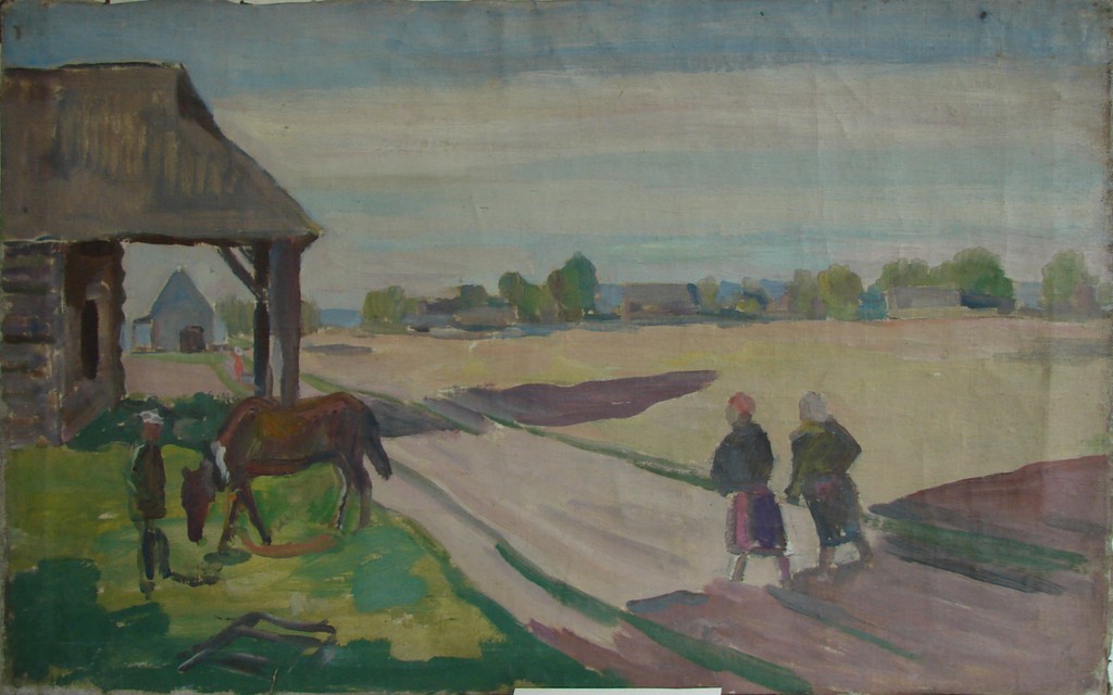 - Дорога в деревню. (На обороте: Фрагмент декоративной композиции).