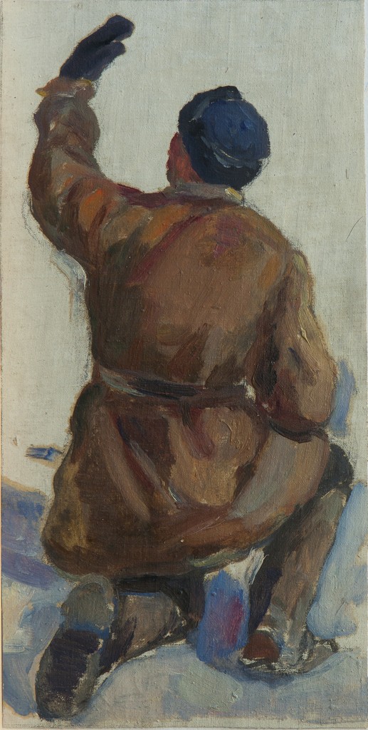 - Этюд Фигура мужчины, стоящего на левом колене с поднятой левой рукой.